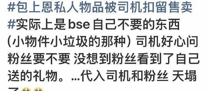 可声明发出去没多久,好几个自称知情人的爆料就出来了。说法完全相反,说根本不是扣留,是包上恩团队自己把东西当垃圾扔了,里头还有粉丝送的礼物。