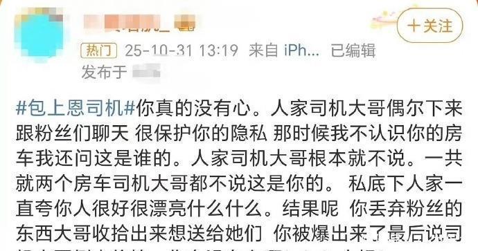 最让粉丝伤心的,还是礼物这事儿。工作室斩钉截铁说“绝不丢弃粉丝心意”,可脱粉的粉丝信誓旦旦,说亲眼看见自己的心意出现在那些被“处置”的物品堆里。而且这也不是包上恩团队第一次被质疑区别对待粉丝了,旧账一翻,信任危机就更大了。